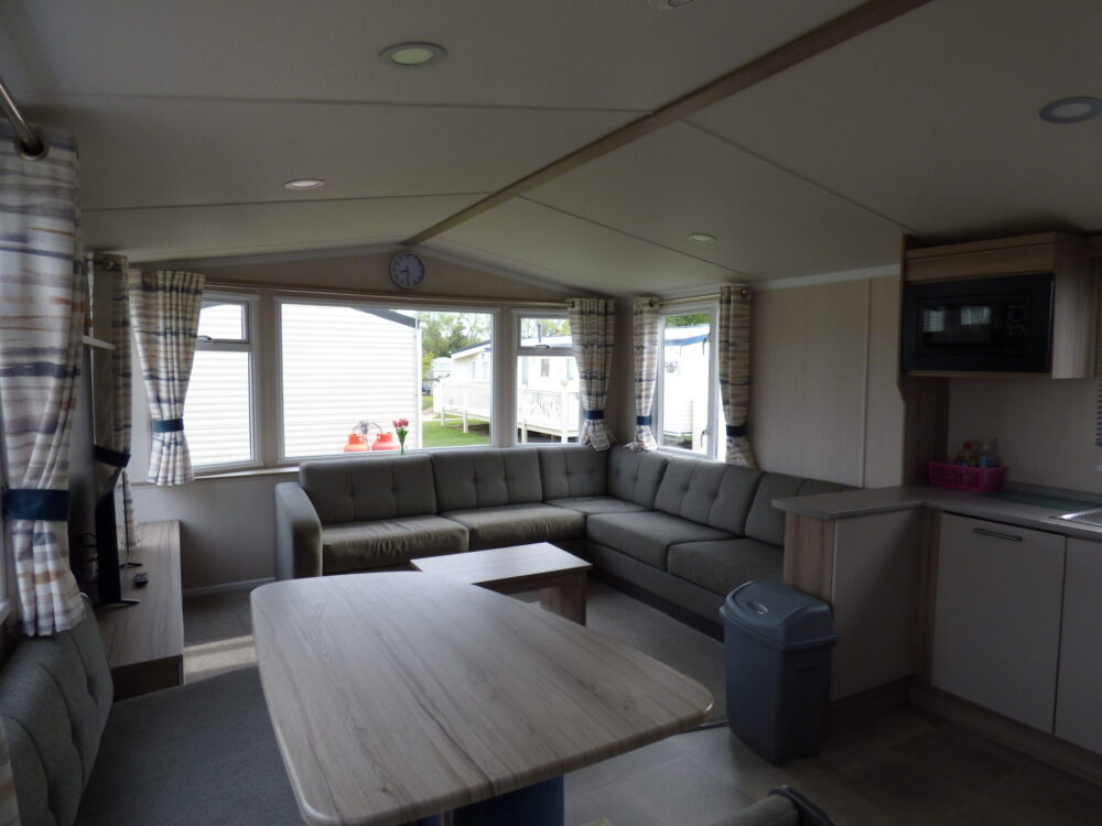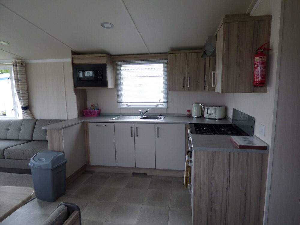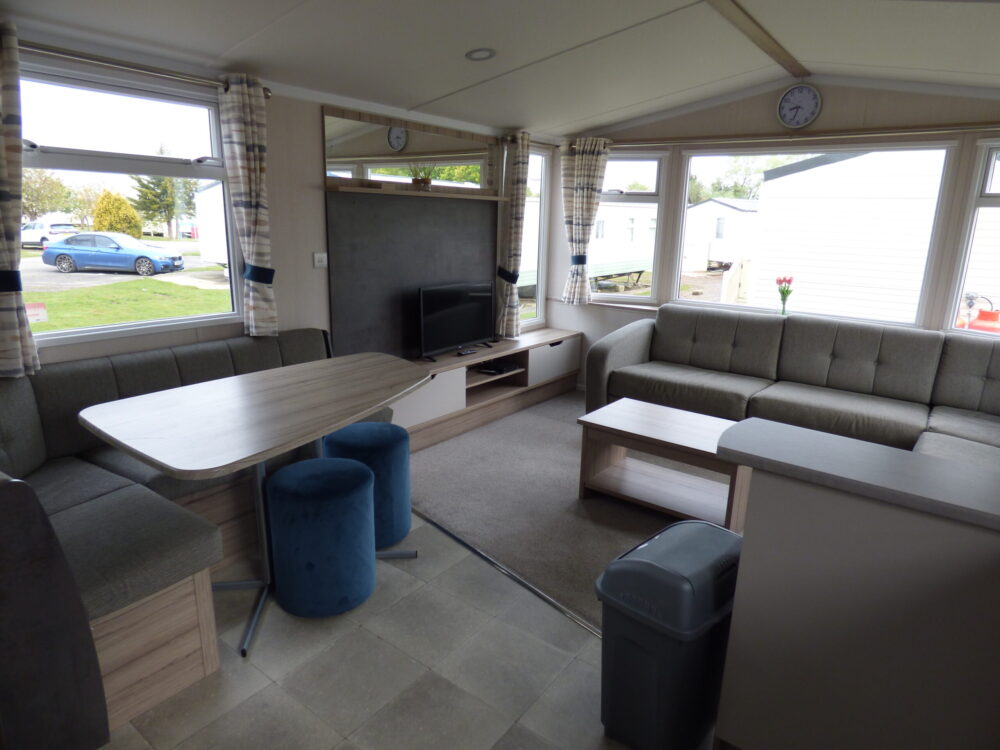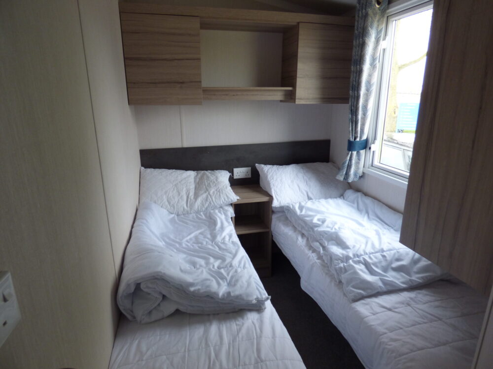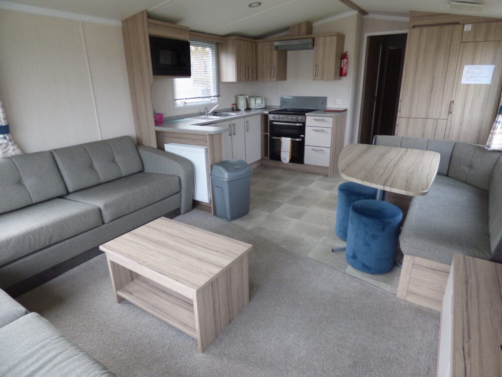 Slater is a modern 8 berth (3 bedroom) holiday home for hire on Southview Leisure Park in Skegness. This double glazed and central heated caravan is located on a very convenient pitch for making the most of the park's facilities. Just a short walk from one of Southview's fishing lakes, next to the recreation area and having both the main entertainment and leisure centre complex within 5 minutes walk this spacious 12 foot wide caravan is perfectly located for your stay on one of the best loved holiday parks on the East Coast. The extra benefits of double glazing and central heating will ensure you have a comfortable break any time of year, and if the weather does get the better of you then WiFi will keep the tech-dependant entertained. Slater offers an open living and kitchen area as well as a separate table and chairs for enjoying a family meal; for bedrooms there is a double room, two twin rooms and a pull-out bed in the living area. Parking is also conveniently located next to the caravan.